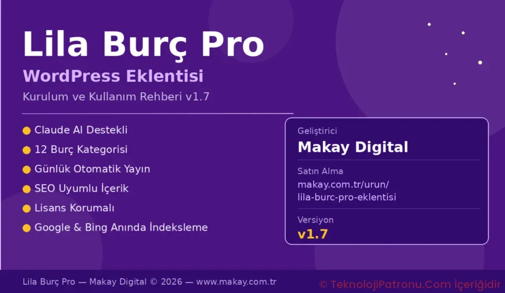 Lila Burç Pro, astroloji içeriği üreten web sitelerinin ihtiyaç duyduğu her şeyi tek bir eklentide toplar.
